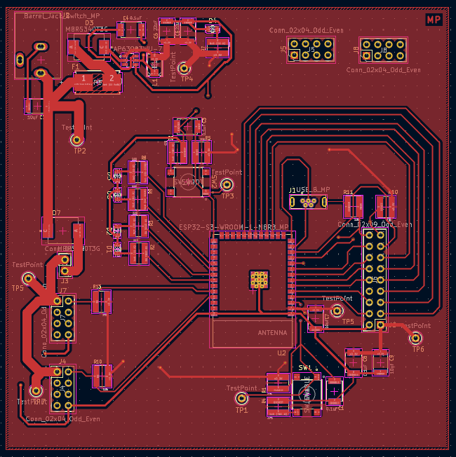 This page contains all design files and documentation for the ESP32 Wireless Communication Subsystem, including the PCB layout. The system integrates an ESP32-S3-WROOM-1 Wi-Fi module, OV5640 camera module, AP63203WU-7 buck regulator, debug LEDs, tactile switches, and supporting circuitry for wireless communication and image capture.