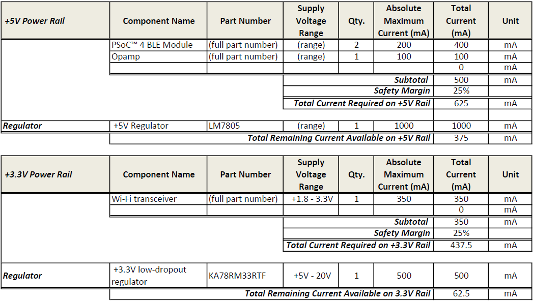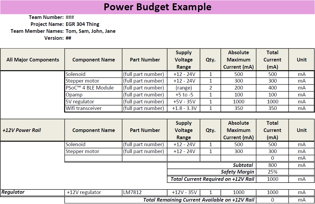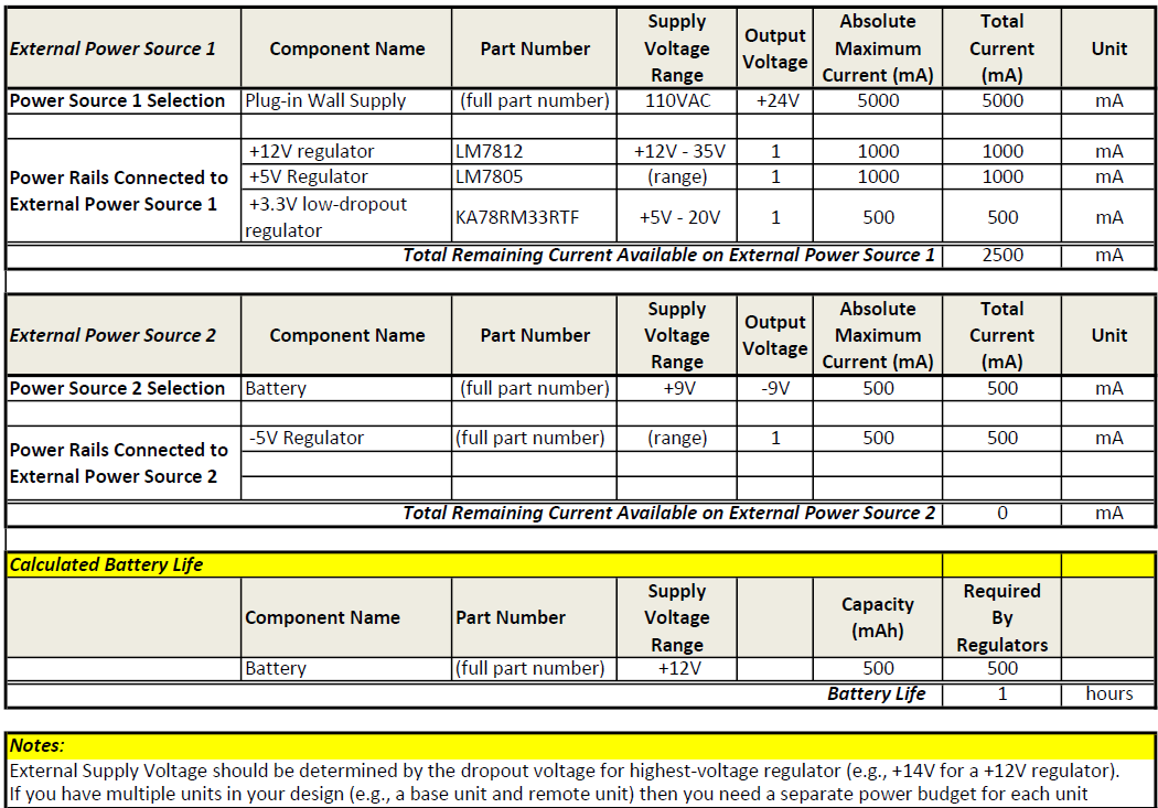 The power budget as a PDF download is available here, and a Microsoft Excel Sheet here.